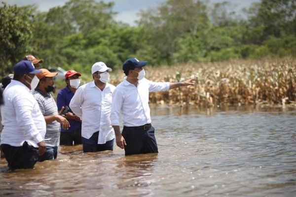 Como parte de su agenda de este día, Vila Dosal continuó con la distribución de maíz para consumo, paquetes de ayuda alimentaria y cobijas en estas dos demarcaciones, donde también constató personalmente las afectaciones que dejó la tormenta Cristóbal en el campo y las carreteras.