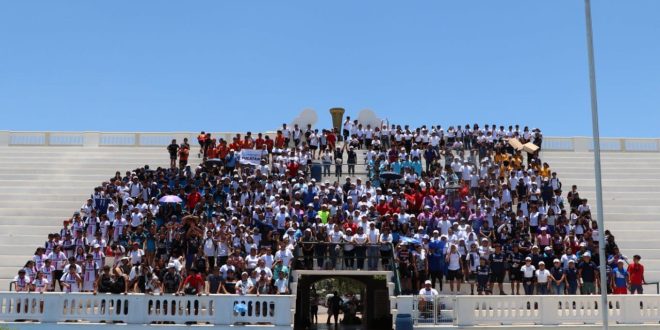 Mérida, Yucatán, 27 de mayo de 2024. En un ambiente de deporte, cultura y recreación, más de 800 estudiantes de los 28 planteles de igual número de localidades pertenecientes al Bachillerato Yucatán participaron en el “Primer Encuentro Deportivo y Cultural”, que se realizó en el estadio Salvador Alvarado, reforzando la sana convivencia, los valores y el trabajo colaborativo y armónico entre alumnas, alumnos y docentes.