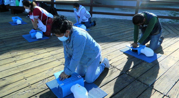 La Coordinadora local de Capacitación, Pricila Cetz Baqueiro fue la encargada de impartir el curso en el Deck del malecón, como parte de las actividades programadas para la semana de Yucatán por más Deporte, que impulsa el Gobierno del Estado. Ahí explicó cuáles son los pasos a seguir en caso de presenciar la parada cardíaca de una persona.