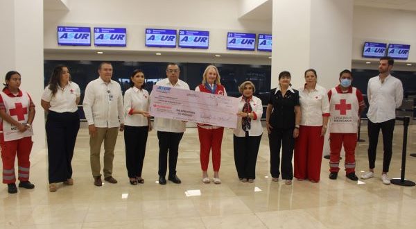 Mérida, Yucatán 15 de junio de 2023.- Esta mañana en el Aeropuerto Internacional de Mérida, Manuel Crescencio Rejón, el Director de Aeropuertos Regionales de ASUR, Héctor Navarrete Muñoz entregó a la Delegada Estatal de Cruz Roja Mexicana en Yucatán, Michelle Byrne de Rodríguez un donativo por 30 mil pesos que servirán para el mantenimiento de las ambulancias de la Delegación Mérida.
