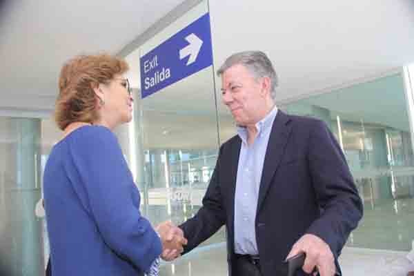 En la misma terminal, la funcionaria dio la bienvenida a Juan Manuel Santos Calderón, político y economista colombiano, quien ejerció la Presidencia de su país de 2010 a 2018 y, actualmente, es profesor en la Escuela de Gobierno “John F. Kennedy” de la Universidad de Harvard.
