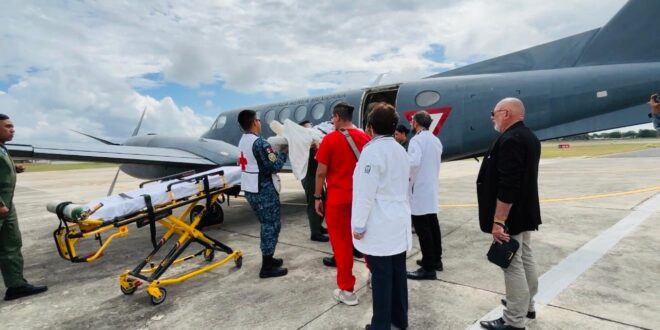 El director de la UMAE, doctor Roberto Abraham Betancourt Ortiz, junto a un equipo multidisciplinario se dirigió a la base militar número 8, en el aeropuerto internacional de la capital yucateca, “Lic. Manuel Crescencio Rejón”, donde el paciente arribó, acompañado por personal médico que lo atendió en todo momento, a bordo de un avión de la Secretaría de la Defensa Nacional (SEDENA), para continuar con su recuperación en esta unidad.