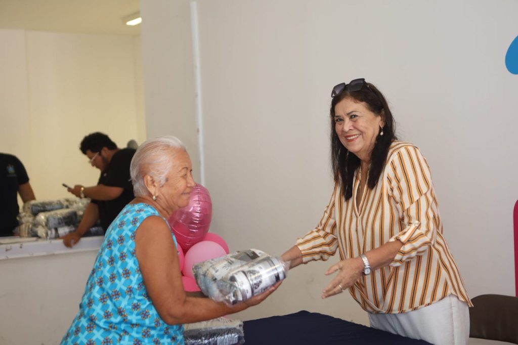 Progreso, Yucatán a 24 de octubre de 2024. La presidenta honoraria del DIF municipal, Mtra. Dolores del Carmen González Pacheco, y la directora de dicha institución, Leslie Cristina González Gamboa, entregaron ayer por la tarde asistencia alimentaria a 41 personas inscritas en el programa estatal “Apoyo para pacientes con cáncer”.