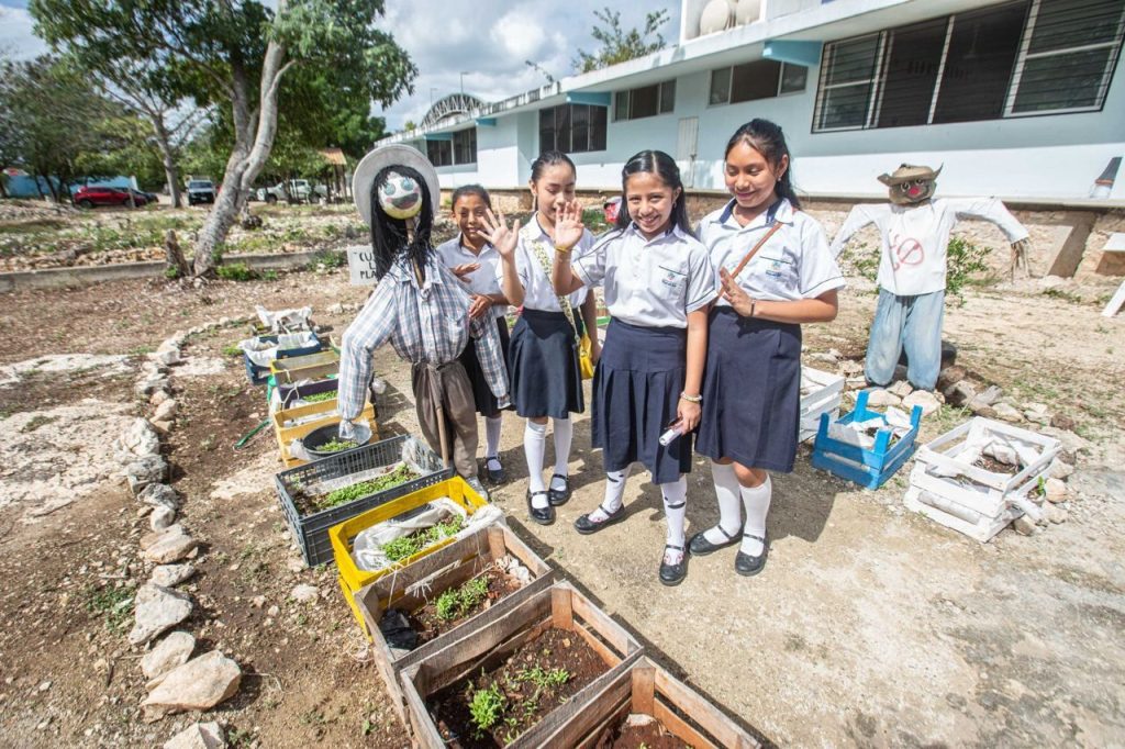 De esta manera, las y los estudiantes de la escuela “Carlos Carillo Vega”, de Mérida, realizaron un huerto de vegetales en el que sembraron aguacate, lechuga, zanahorias, cilantro, entre otros; adicionalmente construyeron una colmena, recolectaron PET y organizaron un concurso de botes de basura con materiales reciclados en el que participó toda la comunidad educativa.