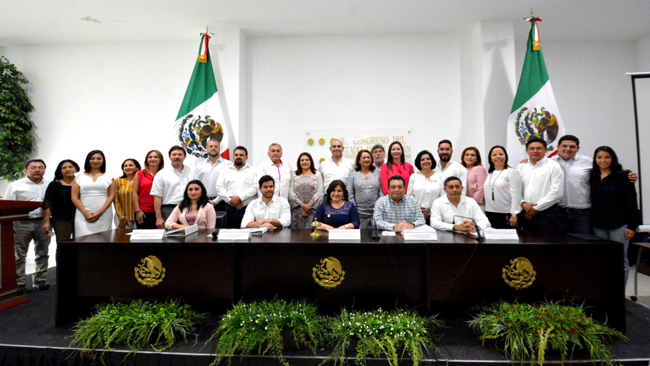 Por orden alfabético de sus apellidos los nuevos diputados fueron llamados por dicha comisión que estuvo integrada por la presidenta de la Junta de Gobierno del Congreso local, Celia Rivas Rodríguez (PRI), Marco Antonio Novelo Rivero (PAN), Marbellino Burgos Narváez (Nueva Alianza), Enrique Febles Bauzá (PVEM) y Jazmín Villanueva Moo (Morena).