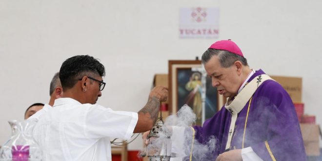 · Ante 600 hombres y mujeres privados de su libertad, el arzobispo de Yucatán, Mons. Gustavo Rodríguez Vega, ofició la misa en la que habló sobre la misericordia de Dios.