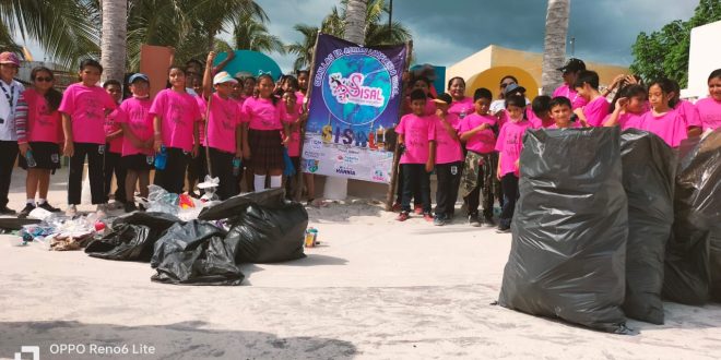 En compañía de la directora del plantel, Karina Chí Osalde, expresó que la basura que deja el turismo es trasportada por el viendo a la duna costera, mientras que la generada por el pueblo va a parar a la ciénega y a la Reserva Estatal El Palmar.