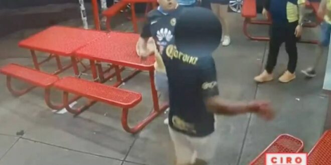 CIUDAD DE MÉXICO.- Estas son imágenes del momento en que 4 aficionados del América asesinaron a golpes a un hombre al terminar la semifinal de la Liga de Campeones de Concacaf, en Filadelfia, Estados Unidos.