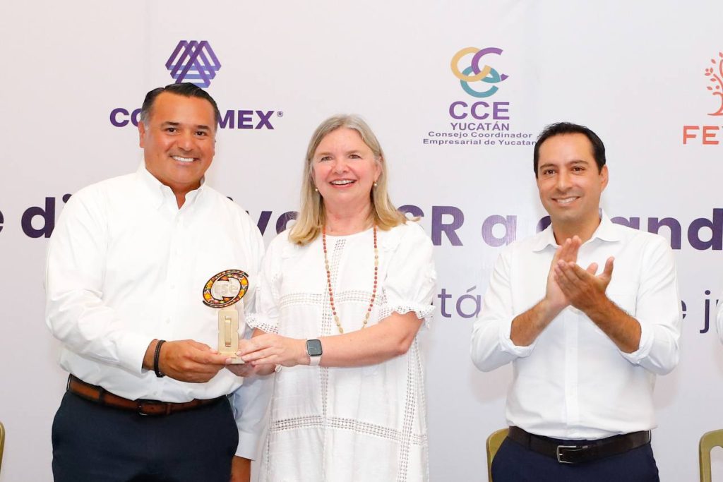 Además, recibieron distintivos como entidades promotoras el Ayuntamiento de Mérida y Coparmex.