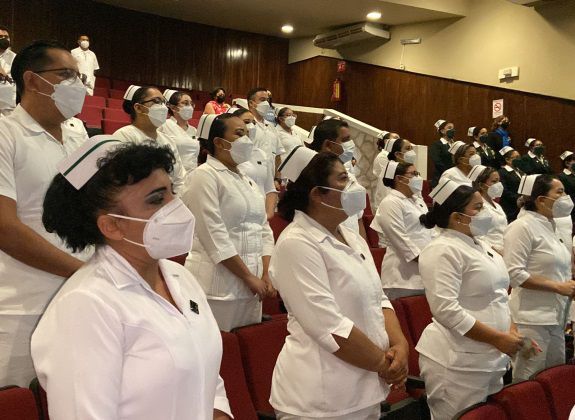 El Instituto Mexicano del Seguro Social (IMSS) en Yucatán lleva a cabo una ceremonia de reconocimiento para todo el personal de Enfermería y otorga 55 diplomas a profesionales de esta noble labor, que se destacaron por su desempeño durante el año 2021; en el marco del Día de Enfermería.