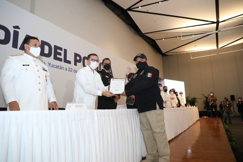 Mérida, Yucatán, 22 de diciembre de 2021.- Por su lealtad, valentía y compromiso con salvaguardar la paz que prevalece en Yucatán, así como su entrega para salir adelante, al hacer frente a la pandemia y los desastres naturales que afectaron al territorio, el Gobierno del Estado reconoció la invaluable labor de las y los elementos de la Secretaría de Seguridad Pública (SSP), que han hecho que, hoy, la entidad esté de pie y más fuerte que nunca.
