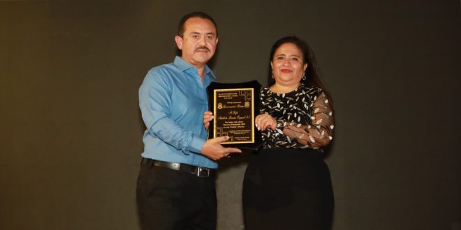 Posteriormente, el edil, entregó reconocimiento póstumo al Maestro Distinguido 2024, profesor Adalberto Paredes Esquivel, el cual lo recibió su hija, la señora Aurora Cecilia Paredes Carreón.