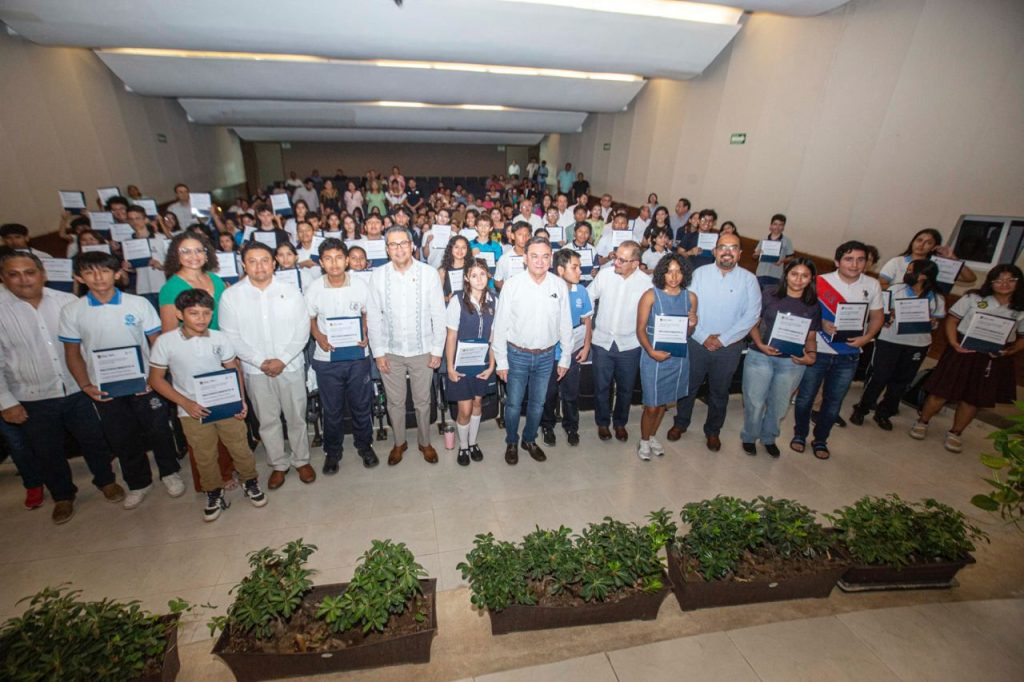 “Hoy es un día muy importante de celebrar ya que firmamos un convenio de colaboración para que esto mejore, les felicito por este resultado que han tenido, obviamente también una felicitación a todos los que conforman su familia, porque creo que este es un logro siempre que se debe compartir entre el hogar y la escuela, pues con el apoyo de la UADY y Segey, podemos lograr cosas muy importantes y relevantes”, señaló.