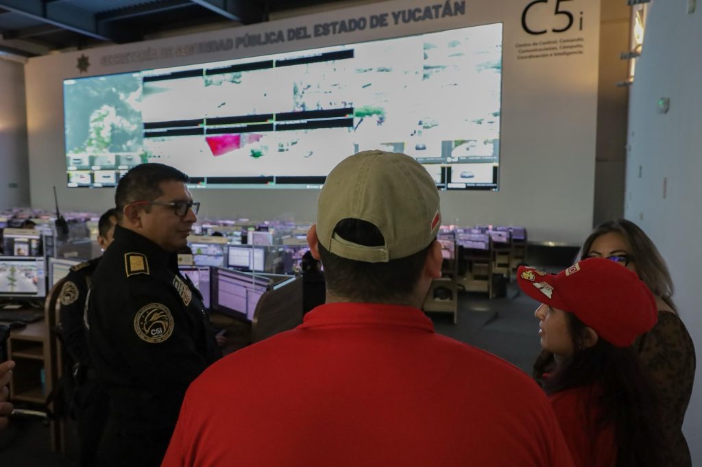 Durante su visita, conocieron la operatividad del sistema de respuesta inmediata que se despliega desde el C5i al momento de activar un botón de pánico. En el acto estuvo presente el comandante Marcos Mena Can, responsable del C5i, acompañado de coordinadores operativos.