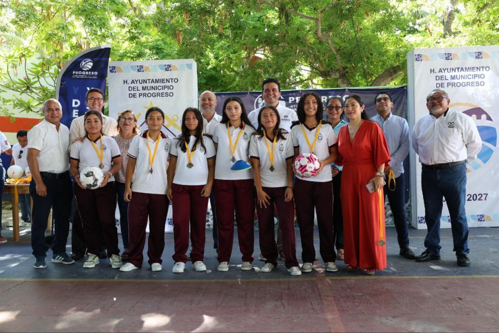 Progreso, Yucatán, a 25 de junio de 2025.-El Ayuntamiento de Progreso, que preside el Ing. Erik Rihani González, a través de la Dirección de Deporte y Juventud, llevó a cabo esta mañana la premiación de la Liga Intersecundarias en la Escuela Secundaria Progreso.