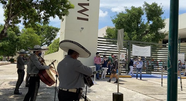 MÉRIDA, Yuc., 24 de agosto 2020.-En señal de gratitud a la dedicación, compromiso y labor que realiza todo el personal médico de la Unidad de Medicina Familiar (UMF) No. 57 del Instituto Mexicano del Seguro Social (IMSS) en Mérida, ante la actual emergencia sanitaria, el mariachi “Nuevo Yucatán” compartió su música con los trabajadores de la salud.