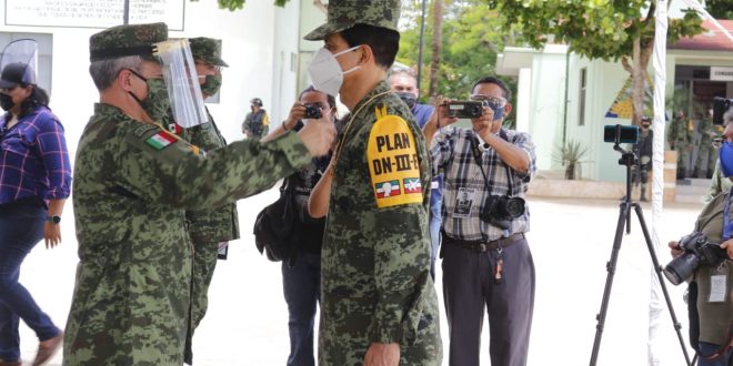 Mérida, Yucatán a 17 de junio de 2020.- La Secretaría de la Defensa Nacional, a través de la X Región Militar y la 32/a. Zona Militar, informan a la opinión pública, que esta fecha se realizó una ceremonia de entrega de condecoraciones al mérito militar, distinción de desempeño de Plan DN-III-E y reconocimiento al personal militar y civil que se ha destacado en la aplicación de referido plan durante la contingencia ocasionada por el COVID-19.