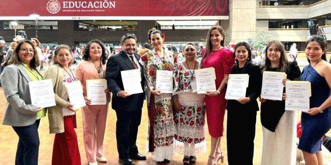 Las docentes, acompañadas de la directora de Educación Preescolar Karina Ojeda Sierra, recibieron sus reconocimientos en las oficinas de la dependencia federal en la Ciudad de México, junto con 400 docentes de todo el país entre investigadores, directivos, supervisores y asesores técnico-pedagógicos (ATP) en el marco de la segunda edición del evento “Fiesta Pedagógica” organizado por la Dirección de Materiales Educativos.