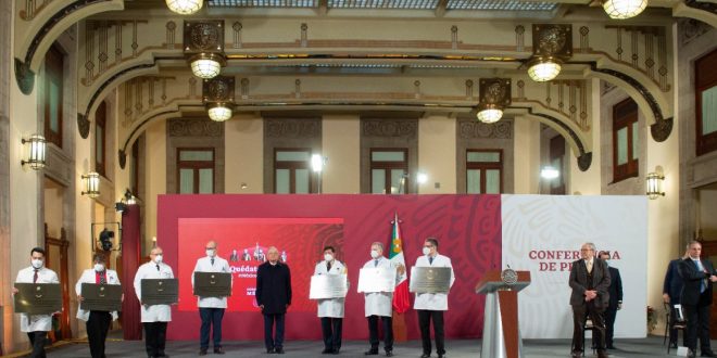 Por su conducta ejemplar frente a la pandemia, el Gobierno de México reconoció este día con la Condecoración Miguel Hidalgo en Grado Placa al personal de salud que labora en 980 hospitales COVID de todo el país.