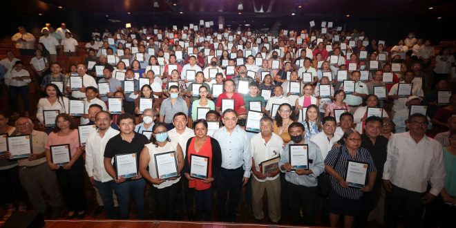 Mérida, Yucatán, a 13 de marzo de 2023.- La Secretaría de Educación del Gobierno del Estado de Yucatán, entregó 264 plazas a Personal de Apoyo y Asistencia a la Educación con mayor continuidad en servicio activo, en reconocimiento a su esfuerzo, mérito y al trabajo que realizan todos los días desde centros de trabajo ADG así como en escuelas de Educación Básica y Media Superior, en un evento encabezado por el titular de la Segey, Liborio Vidal Aguilar en el Palacio de la Música.