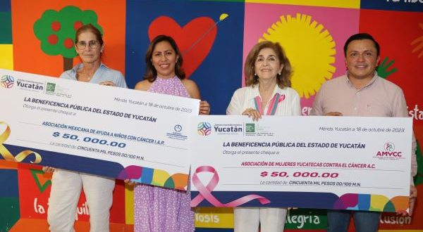 Durante la ceremonia de donación de 50,000 pesos para la Asociación de Mujeres Yucatecas contra el Cáncer (AMYCC), y otros 50,000 pesos para la Asociación Mexicana de Ayuda a Niños con Cáncer (AMANC), sus directivas destacaron que las campañas de prevención del cáncer son sumamente importantes, pues la mayoría de los pacientes que llegan en ocasiones tienen ya metástasis, por lo que el donativo que están recibiendo es importante para continuar con el trabajo que ellos realizan. Zhazil Méndez anticipó que la Beneficencia Pública de Yucatán y el Gobierno del Estado continuarán con los apoyos individuales que otorga como quimioterapias, radioterapias, apoyos para medicamentos contra el cáncer y apoyos económicos para cirugías de pacientes con cáncer, recordando que entre enero de 2019 y septiembre del 2023 se han otorgado en Beneficencia un total de 177 apoyos con una inversión de $521, 513.09, con un total de 60 municipios atendidos Zhazil Méndez mencionó que para el Gobierno del Estado es prioritario el tema de atención al cáncer y es por ello que el donativo que se realiza a través de la Beneficia Pública, será útil para la atención, detección y prevención del cáncer para las niñas, niños y mujeres del Estado de Yucatán, reconociendo el trabajo que ambas instituciones realizan. Es por ello que la Beneficencia Pública, con el espíritu de consolidar aquellas acciones que permitan una mejor salud de las y los yucatecos, realiza junto con el Gobierno del estado dos donativos de $50,000 para cada asociación. El propósito es que la suma sea usada para cubrir servicios, atención médica, prevención, diagnósticos, tratamientos y todas aquellas actividades asistenciales que realicen las asociaciones en favor de las personas que padezcan algún tipo de cáncer del Estado de Yucatán que les permita procurar su salud y mejorar su calidad de vida.