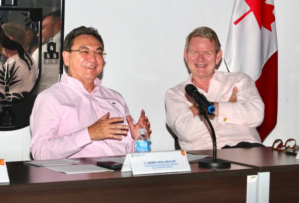 El secretario de Educación del Gobierno del Estado de Yucatán (Segey), Liborio Vidal Aguilar y el Embajador de Canadá en México, Graeme C. Clark, reconocieron el compromiso de las diez docentes, quienes como parte de la Estrategia Ambientes Bilingües de la Agenda Estatal de Inglés, implementan en el aula la enseñanza de este idioma.
