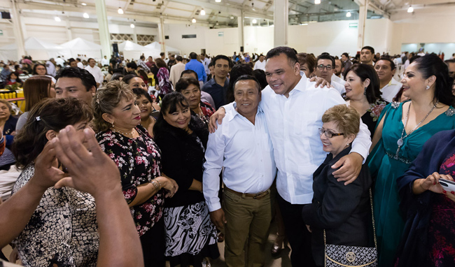 “Sabemos muy bien que, ante cualquier reto y adversidad, cualquier tarea, por difícil que parezca, cuando estamos coordinados, cuando la base trabajadora y las autoridades vamos juntos en un solo esfuerzo y propósito, por supuesto que podemos avanzar”, aseveró en el salón “Chichén Itzá” del Centro de Convenciones Yucatán Siglo XXI.