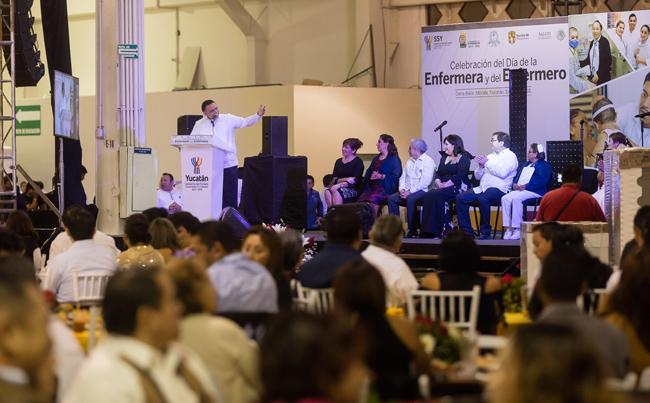 Mérida, Yucatán.- El rostro más cálido del servicio público es cuando se brinda una atención médica con sensibilidad, calidad y calidez humana, como el que brindan en Yucatán los profesionales de enfermería, señaló el Gobernador Rolando Zapata Bello durante el festejo del Día Nacional de la Enfermera y el Enfermero, que se conmemora cada 6 de enero.