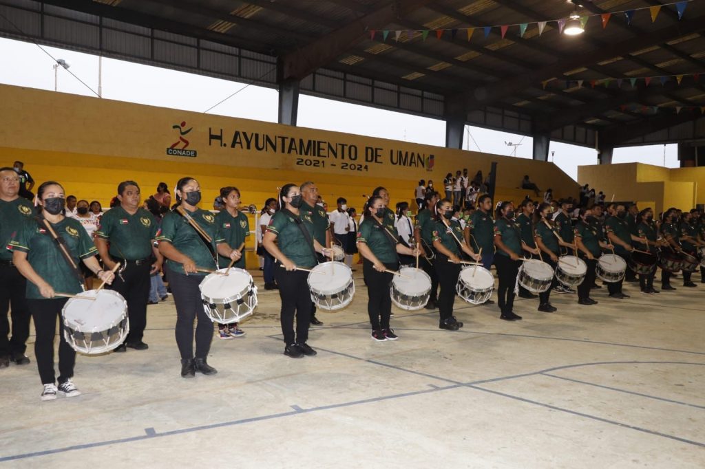 Umán, Yucatán a 19 de septiembre de 2022.- En el marco de la conmemoración por los 212 años de Independencia de México, en la Ciudad Capital de las Industrias reconocemos el trabajo que realizan organizaciones como la Banda de Guerra “Comanches” en sus participaciones diversas para engalanar estas fiestas.