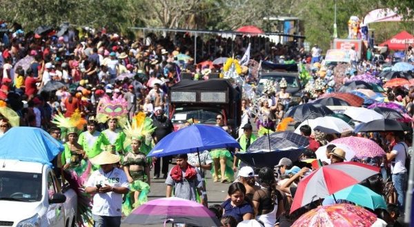 El desfile de comparsas y carros alegóricos inició a las 13 horas y a lo largo de aproximadamente dos horas animó a los asistentes con música, baile, coloridos disfraces y una lluvia de obsequios que caía desde los carros alegóricos.