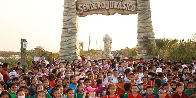 Progreso, Yucatán a 1 de mayo de 2023. Durante el mes de abril, Sendero Jurásico recibió a 5,963 turistas y 3,801 alumnos provenientes de distintas escuelas de todo el estado, rompiendo su propio record de visitas mensuales al registrar un total de 9,764 personas, así lo señaló Cintia Sosa Gómez, Titular de la Dirección de Zona Costera y encargada del Sendero Jurásico. Tan solo el jueves pasado asistieron al parque temático alumnos, maestros y padres de familia de las escuelas del Centro Escolar Indígena Hunab Ku de Mérida, y la Escuela Indígena de Tzucacab, así como de escuelas de los municipios de Tekantó, Dzemul, Kanasín y Conkal.