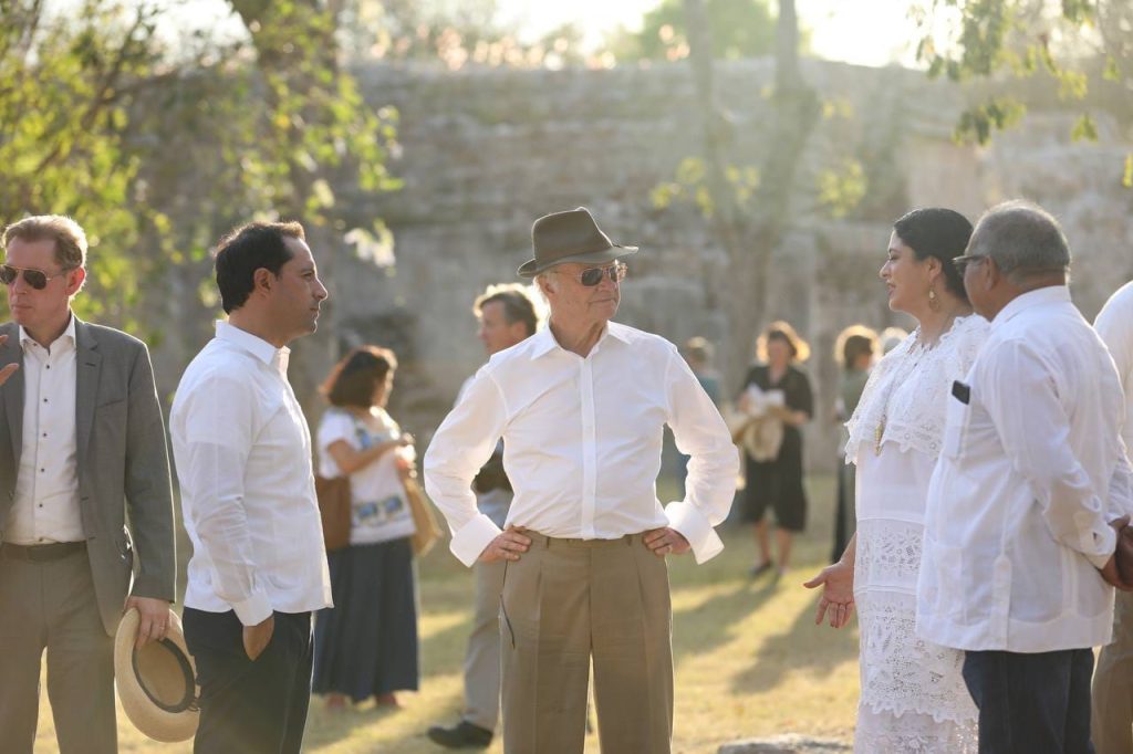 Recorren Mauricio Vila y los reyes de Suecia, Carlos XVI Gustavo y Silvia, la zona arqueológica de Uxmal