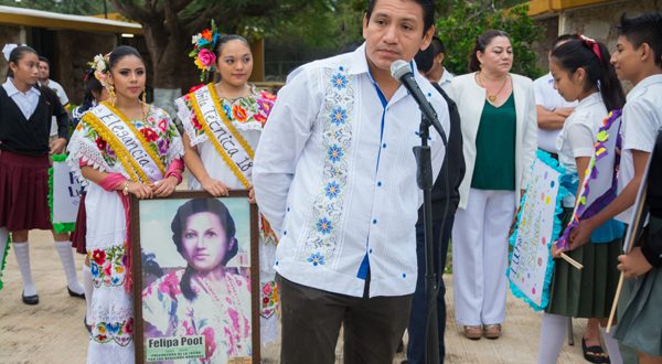 En presencia de las sobrinas de la homenajeada, Juana Bautista Puc Tzuc y Antonia Poot Puc, el alcalde Carlos Valentín Pech Dzib expresó que en aquella época el campesino era obligado a trabajar la tierra para los patrones sin siquiera tener derechos sobre lo que cultivaba, pero que Felipa, con su tenacidad y decisión, vino a cambiar todo.