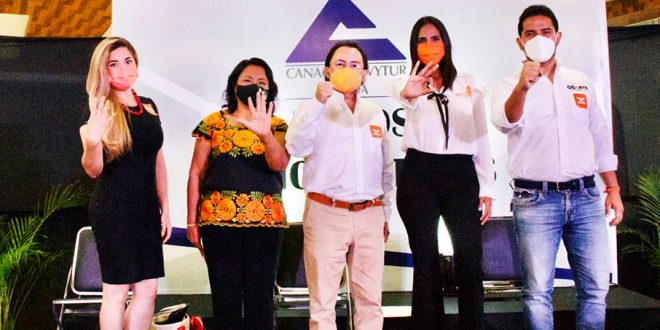 Mérida, Yucatán, 5 de mayo de 2021.- “Se debe transitar hacia una reforma fiscal diseñada de la mano de los sectores productivos del país, permitir el 100% de las deducibilidades por este concepto es apostarle al progreso, al desarrollo social y a una mejor calidad de vida de las y los mexicanos” expresó la candidata de Movimiento Ciudadano por el III Distrito Federal, Alaine López Briceño, al participar en los Foros Democráticos que organizó la Cámara Nacional de Comercio, Servicios y Turismo de Mérida (Canaco-Servytur).
