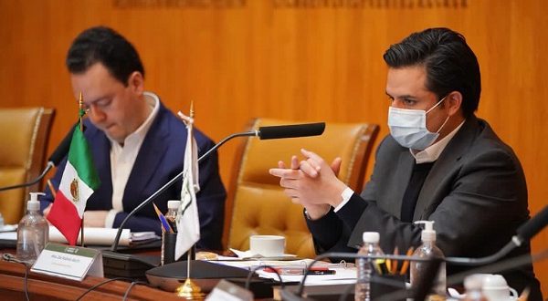 En videoconferencia, los representantes del sector obrero José Luis Carazo Preciado, Rodolfo Gerardo González Guzmán y José Noé Mario Moreno Carbajal; además, los consejeros del sector patronal, Francisco Alberto Cervantes Díaz, Salomón Presburger Slovik, Manuel Reguera Rodríguez, José Manuel López Campos y Ricardo García Portilla;