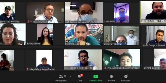 Durante una reunión en línea con firmas que tienen presencia en distintos municipios, la dependencia convocó a las y los titulares de protección civil de varias localidades, para estar en coordinación con los negocios y atender los asuntos que les competen.