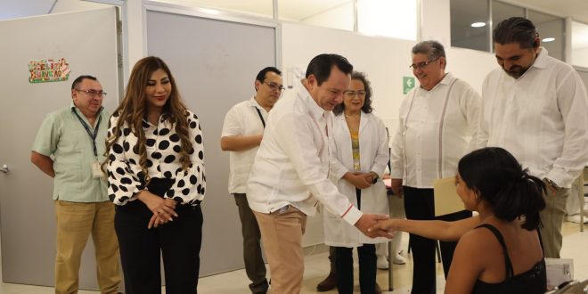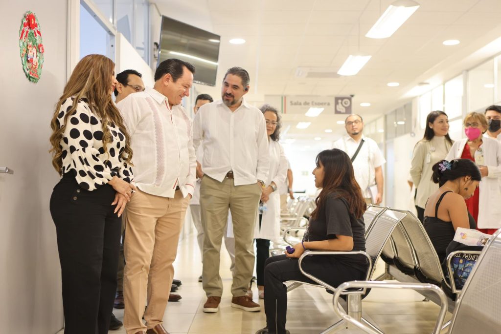 A su llegada al edificio ubicado al sur de la ciudad, el mandatario estatal, acompañado por la presidenta del Sistema para el Desarrollo Integral de la Familia (DIF) Yucatán, Wendy Méndez Naal, y el Dr. Alberto Alcocer Gamboa, representante del IMSS – Bienestar, recorrió las principales áreas que conforman el hospital, iniciando en consulta externa, donde conversó con las pacientes, quienes expresaron sus experiencias al recibir atención. A ellas les externó el respaldo y compromiso de su Gobierno, a fin de que puedan llevar el proceso de embarazo y nacimiento de sus hijos de la mejor manera.