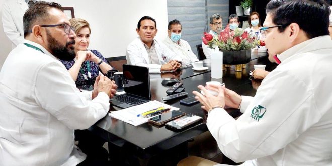 Este encuentro, realizado en las oficinas del Órgano de Operación Administrativa Desconcentrada en Yucatán, estuvo encabezado por su titular, doctor Alonso Juan Sansores Río, así como por el titular del IMSS Campeche, doctor José Luis López Macías, además de los equipos de trabajo de ambas representaciones.