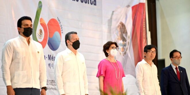 La titular de la Secretaría General de Gobierno (SGG), María Fritz Sierra, y el embajador de ese país en México, Jeong-In Suh, encabezaron la ceremonia conmemorativa por el 60 aniversario de las relaciones diplomáticas entre las dos naciones, en el marco del cuarto Día de Corea en Mérida.