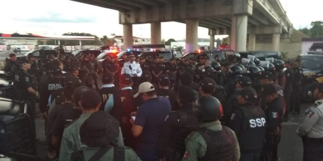 El titular de la SSP, Comandante Luis Felipe Saidén Ojeda, se reunió con el personal en la base policiaca del Periférico con carretera a Valladolid, antes de que emprendieran la misión.