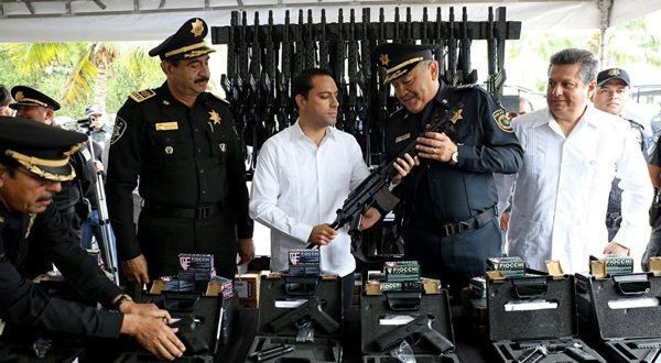 Asimismo, el mandatario también dotó a los municipios de Valladolid, Tizimín, Izamal, Oxkutzcab, Peto, Tekax, Motul y Ticul con equipo de comunicación que comprende 87 radios móviles, 160 portátiles y ocho de base, para garantizar una mejor operatividad. A su vez, la Policía Municipal de Mérida recibió 30 pistolas calibre 9 milímetros, 20 rifles marca Beretta, cargadores, kits de limpieza de ese armamento y cartuchos.