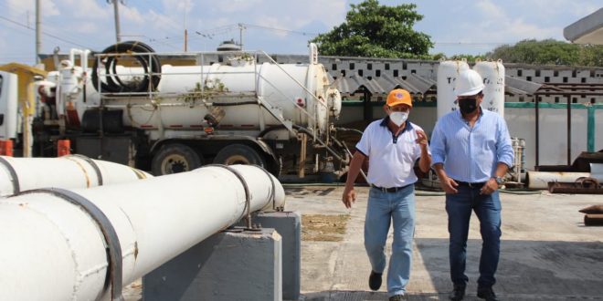 Progreso, Yucatán a 06 de mayo de 2021. El Presidente Municipal Interino, ingeniero José Alfredo Salazar Rojo, asistió ayer en compañía del responsable de la Unidad de Protección Civil, Aurelio Teodoro Medina Pérez a supervisar el protocolo de seguridad implementado para el mantenimiento de las líneas de hidrocarburos de PEMEX que se encuentran en la calle 84.