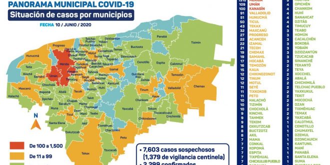 Mérida, Yucatán, 10 de junio de 2020.- Hoy se reportaron también 47 casos más del IMSS a la plataforma nacional, rezagados de las últimas 72 horas, que la plataforma nacional no había contabilizado.Con este acumulado, son 87 nuevos casos los que se reportan hoy: 42 en Mérida, 13 en Tekax, 7 en Hunucmá y Kanasín, 3 en Umán y Tecoh, 2 en Akil, Hoctún, Izamal, Peto y 1 en Acanceh, Samahil, Timucuy y Tixkokob.En total, ya son 2,299 casos positivos, 17 de los cuales son de otro país u otro estado.