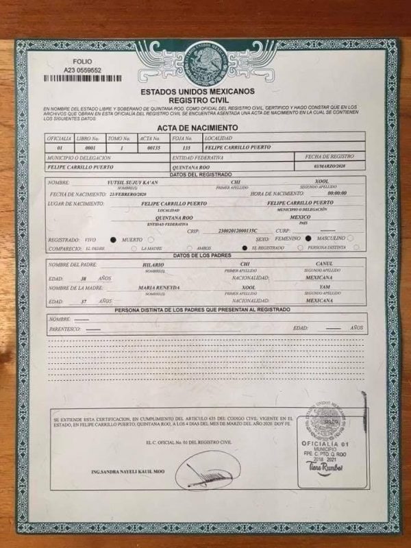 Chi Canul actualmente es catedrático de la máxima universidad de Q. Roo (UQROO), registró a su pequeña este día con el nombre completo en maya algo no muy común, sin embargo es un gran ejemplo para sentirse orgullosos de la riquisa cultural que tiene Yucatán.