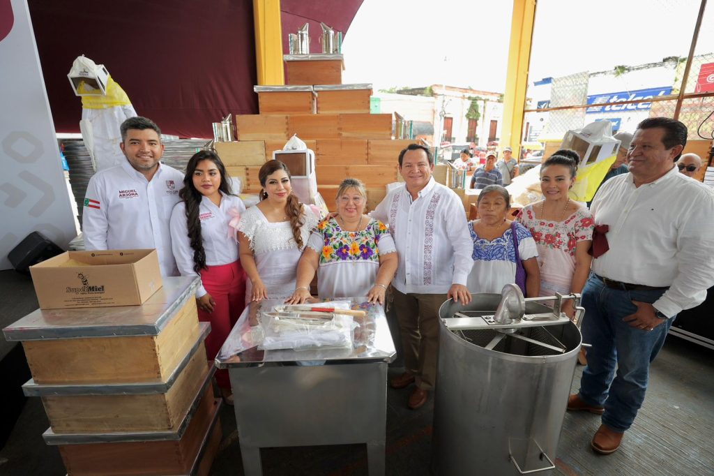 “Es una inversión de 3 millones 500 mil pesos para mujeres como ustedes, que luchan cada día por sacar adelante a sus familias”, afirmó el Gobernador, quien detalló que se hizo entrega de insumos para bordados a mano, a máquina, equipos de urdido de hamaca, equipos de artesanías a base de henequén y equipos para la producción apícola.