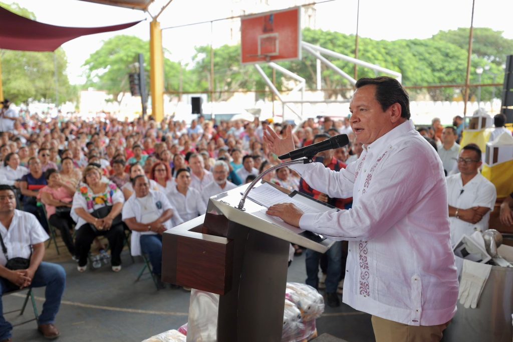Acompañado de la presidenta del Sistema para el Desarrollo Integral de la Familia (DIF) Yucatán, la maestra Wendy Méndez Naal, el Gobernador Joaquín Díaz Mena encabezó la distribución de más de 3.5 millones de pesos en apoyos a mujeres rurales dedicadas a la elaboración de prendas en bordado de punto de cruz a mano, apicultura y artesanías en fibra de henequén.