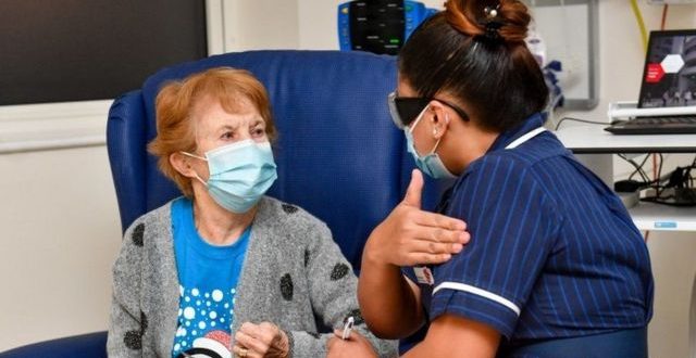 Keenan, a quien sus amigos y familia llaman “Maggie”, recibió la primera de las dos dosis de la vacuna de la enfermera May Parsons, de origen filipino, en medio de una gran atención mediática al marcar el comienzo de lo que el Gobierno del Reino Unido ha denominado el V-Day” (Día de la V o vacunación).