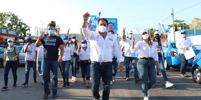 Progreso, Yucatán a 16 de abril de 2021.- Con gran alegría y al ritmo de la batucada, la tarde de ayer el candidato del PAN a la presidencia municipal de Progreso, Julián Zacarías Curi en compañía de su esposa Alma Gutiérrez Novelo, se acercó a los vecinos de la colonia Canul Reyes para conocer sus inquietudes, así como para reiterarles su compromiso de seguir impulsando mejoras en el municipio a beneficio de sus más de 60 mil habitantes.