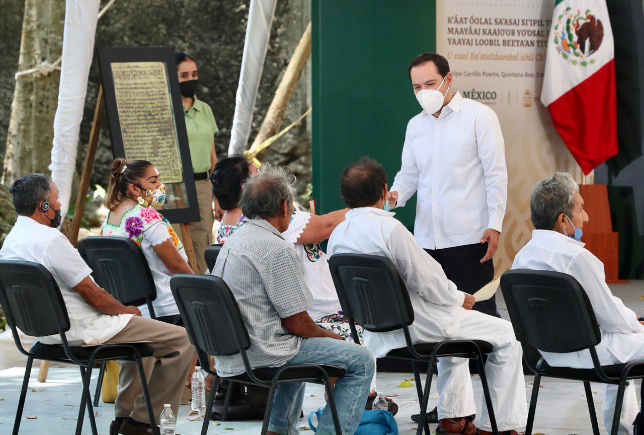 -En comunidad de Tihosuco, Quintana Roo, Vila Dosal encabezó junto con el Presidente Andrés Manuel López Obrador la ceremonia de Petición de Perdón por Agravios al Pueblo Maya. Fin de la Guerra de Castas.
