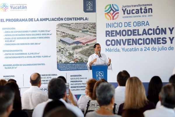 Mérida, Yucatán, 25 de septiembre de 2019.- Los trabajos de remodelación y ampliación del Centro de Convenciones y Exposiciones Yucatán Siglo XXI avanzan conforme a lo programado, por lo que esta obra contribuirá a posicionar a Mérida en el selecto grupo de ciudades capaces de albergar importantes eventos de talla nacional e internacional.